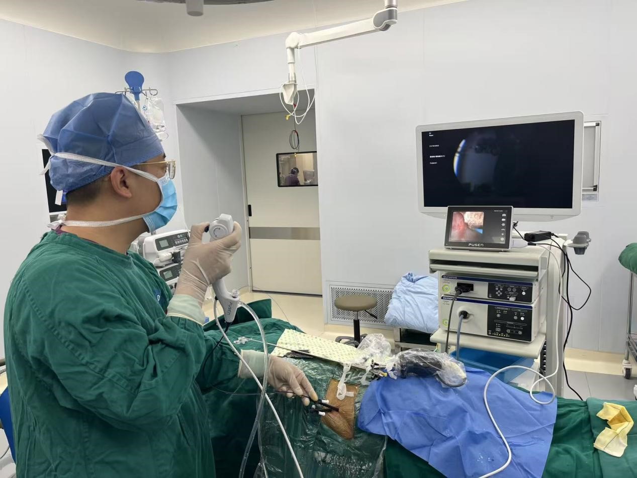 手术过程中,泌尿外科团队与麻醉科、手术室密切协作,精准建立双通道,在高清内窥镜引导下,运用钬激光将结石逐一粉碎并吸出。患者术中出血少,生命体征平稳。