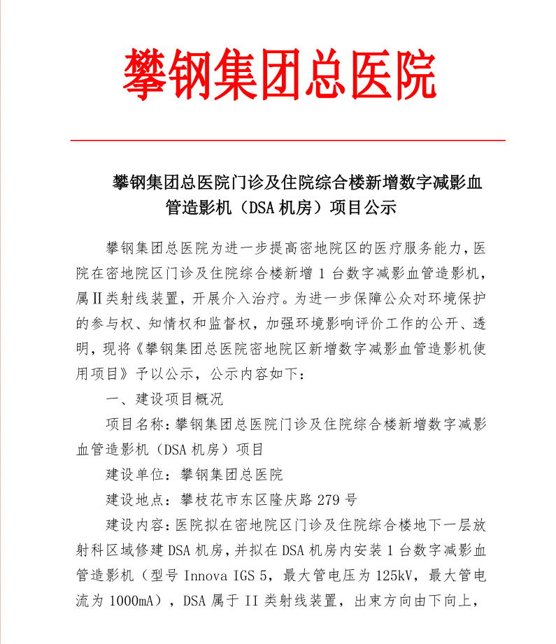 【公示本】攀钢集团总医院门诊及综合楼新建数字减影血管造影机项目环境影响报告表.pdf