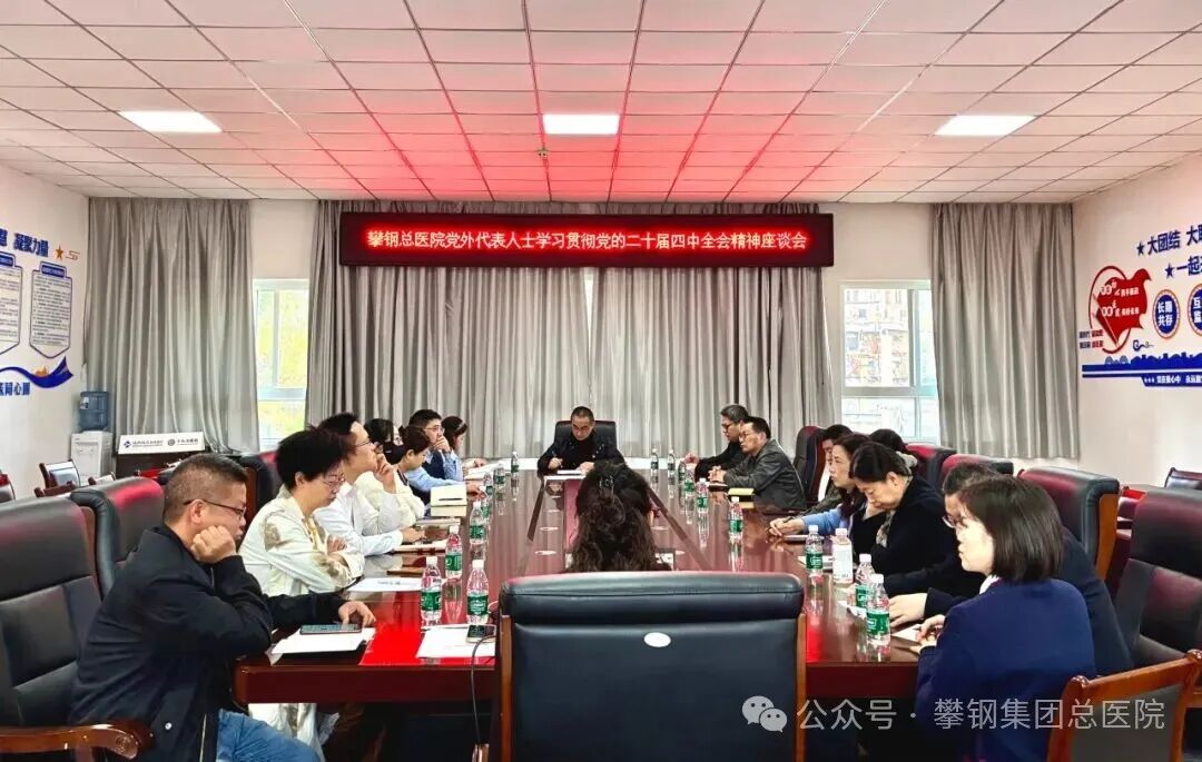 为深入学习贯彻党的二十届四中全会精神,切实把全院党外人士的思想和行动统一到全会部署及医院“十五五”发展规划上来,2025年12月11日下午,攀钢总医院在统战工作室召开党外代表人士学习贯彻党的二十届四中全会精神座谈会。会议由纪委书记杨忠主持,医院各民主党派代表、知联会理事及党群工作部负责人参会。